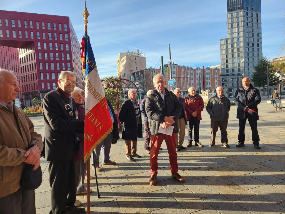 La section ANCAC de Saint-Etienne a participé à la commémoration du 11 novembre 1918 au monument aux morts de la gare.