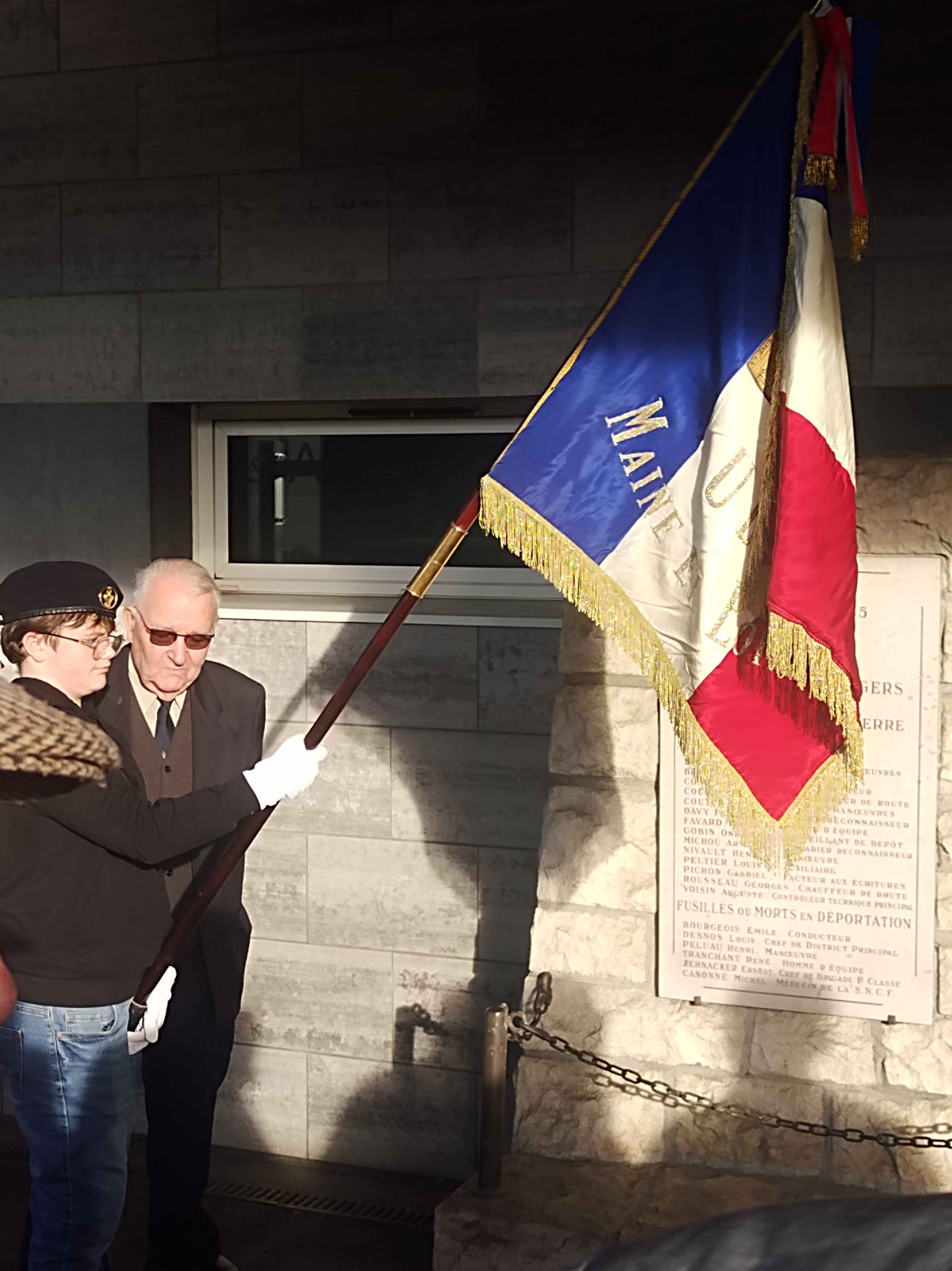 Notre fidèle porte drapeau René Samson était accompagné de son petit-fils. René était fier d'y avoir légué son drapeau pendant la cérémonie.